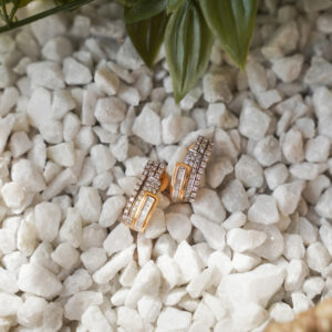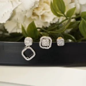 Exuding modern luxury and effortless versatility, these 2-in-1 earrings are crafted in 14K gold with exquisite attention to detail. The top showcases a delicate petal design set with sparkling lab-grown diamonds, while the detachable drops feature finely textured leaves with a central diamond accent. Wear them as refined floral studs or transform them into statement drops, and pair with the matching pendant for a complete, elevated look.